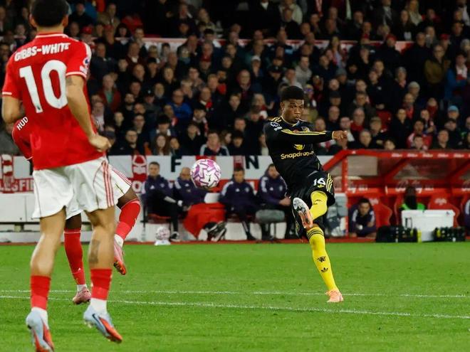相反,曼聯(lián)右翼衛(wèi)阿瑪?shù)掳l(fā)揮出色。比賽第81分鐘,正是阿瑪?shù)峦ι矶鲆砸挥涍h射世界波扳平比分,為主教練阿莫林保住了顏面。比賽尾聲階段,這位科特迪瓦人本有機會完成絕殺,但他的射門在門線解圍,曼聯(lián)最終只能接受一場2-2平局。